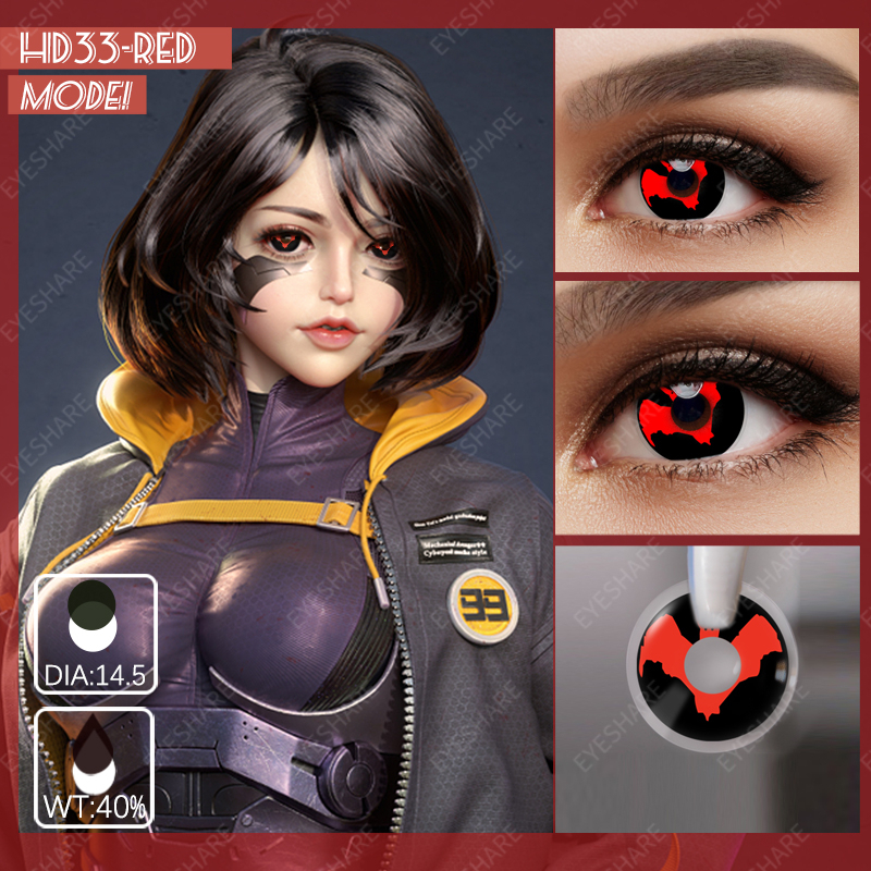 Set your eyes ablaze with the captivating Eyeshare HD33 Red Crazy Contact Lens. These lenses feature a mesmerizing HD33 Red design that adds intensity and allure to your gaze. With a diameter of 14.5mm and a water content of 40%, they provide a comfortable fit for extended wear. Crafted with high-quality HEMA material, these lenses offer clarity and durability. Whether for cosplay, Halloween, or making a bold fashion statement, the Eyeshare HD33 Red Crazy Contact Lens will leave a lasting impression.