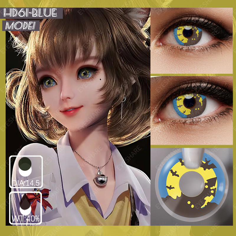 Dive into a world of enchantment with the captivating Eyeshare HD61 Blue Crazy Contact Lens. These lenses feature a mesmerizing HD61 Blue design that adds a touch of magic and mystery to your eyes. With a diameter of 14.5mm and a water content of 40%, they provide a comfortable fit for all-day wear. Crafted with high-quality HEMA material, these lenses ensure clarity and durability. Whether for cosplay, costume parties, or expressing your unique style, the Eyeshare HD61 Blue Crazy Contact Lens will transport you to a realm of stunning beauty.