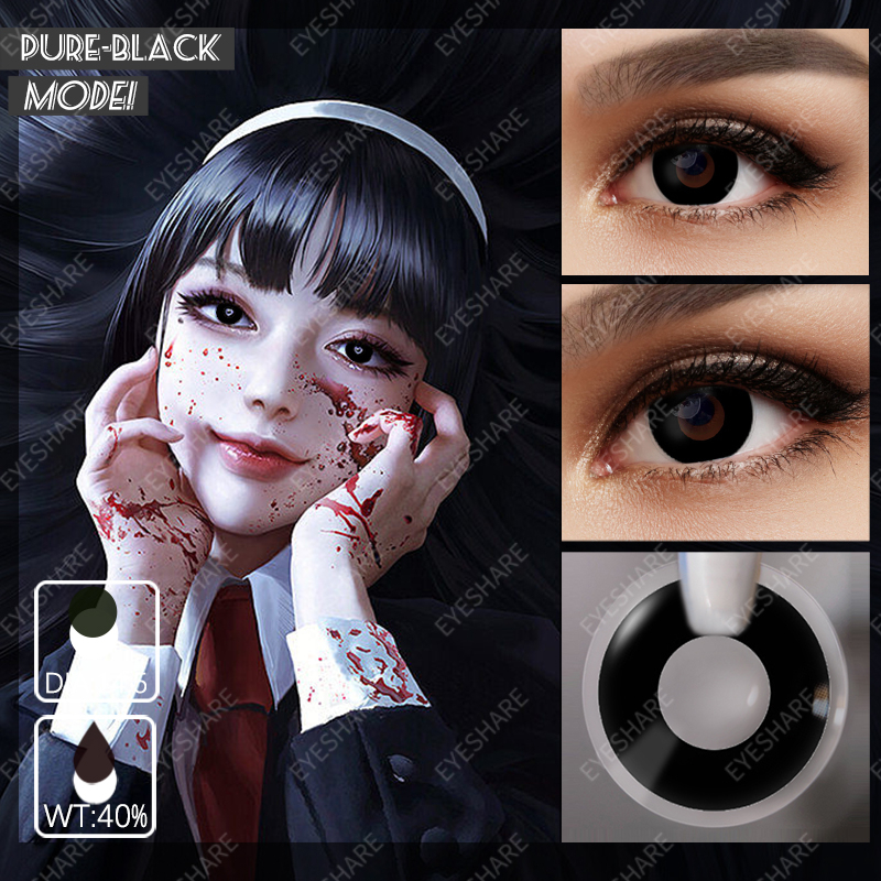 Embrace the darkness with the Eyeshare Pure Black Crazy Contact Lens. These lenses offer a mesmerizing and mysterious look with their intense pure black color. With a diameter of 14.5mm and a water content of 40%, they provide a comfortable and natural fit. Made from high-quality HEMA material, these lenses ensure clear vision and long-lasting durability. Whether you’re cosplaying a supernatural character, attending a gothic-themed event, or simply want to add an edgy touch to your style, the Eyeshare Pure Black Crazy Contact Lens will enhance your overall look and create an unforgettable impression.