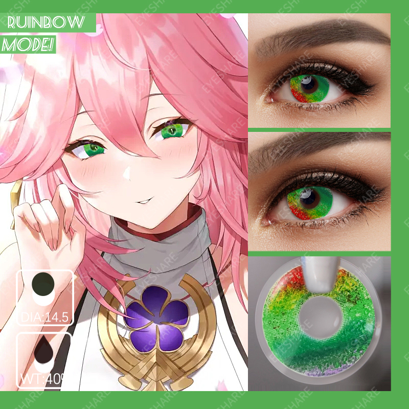 Unleash your wild side with the mesmerizing Eyeshare Ruinbow Crazy Contact Lens. These lenses feature a captivating Ruinbow design that combines vibrant colors in a unique and chaotic pattern. With a diameter of 14.5mm and a water content of 40%, they provide a comfortable and natural fit for all-day wear. Crafted with high-quality HEMA material, these lenses offer clear vision and durability. Whether for cosplay, costume parties, or expressing your individuality, the Eyeshare Ruinbow Crazy Contact Lens will make your eyes the center of attention.