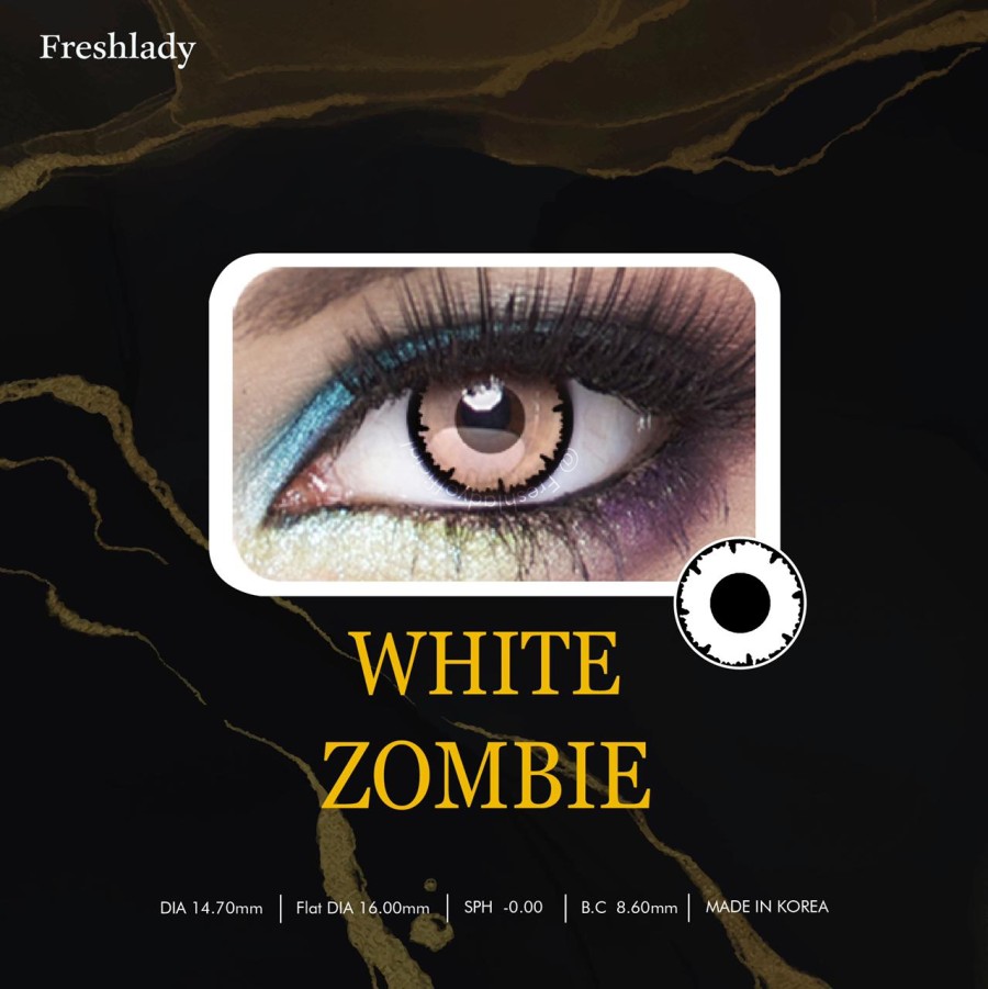 Get ready to haunt everyone’s dreams with Fresh Lady Cosplay Contact Lens in White Zombie. These 16mm lenses, made in Korea, will give your eyes an eerie and otherworldly white look. With a water content of 38% and a base curve of 8.6mm, these lenses offer both comfort and style for up to 6 months. Perfect for Halloween, cosplay, or adding a spooky touch to your everyday style, these lenses will transform your eyes into windows to the supernatural.