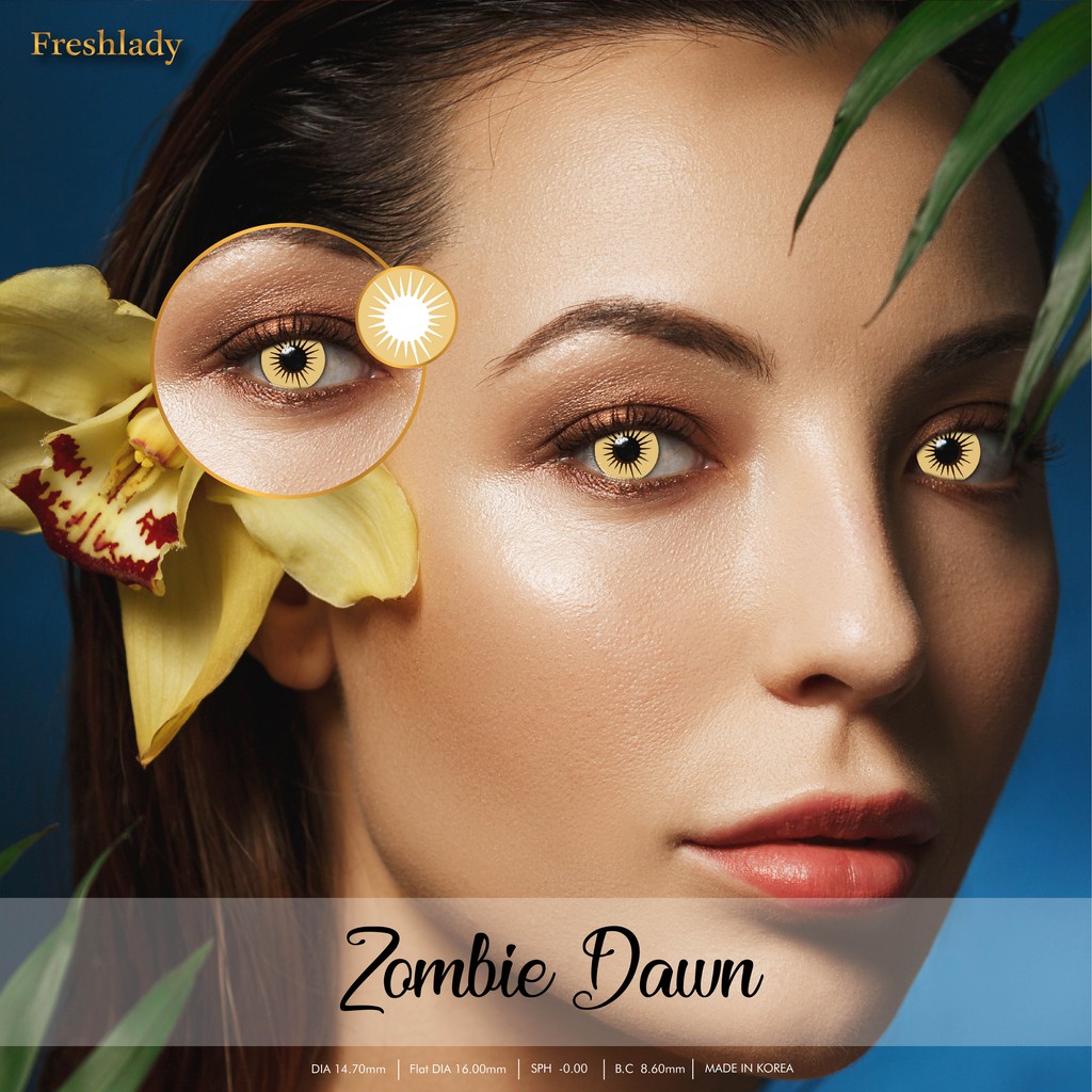 Transform into the undead with Fresh Lady Cosplay Contact Lens in the haunting Zombie Dawn design. Made in Korea, these 16mm lenses bring a spine-chilling realism to your cosplay. With a water content of 38% and a base curve of 8.6mm, they provide a comfortable and secure fit. Each pair is designed to last up to 6 months, allowing you to embrace your inner zombie and create unforgettable cosplay looks.