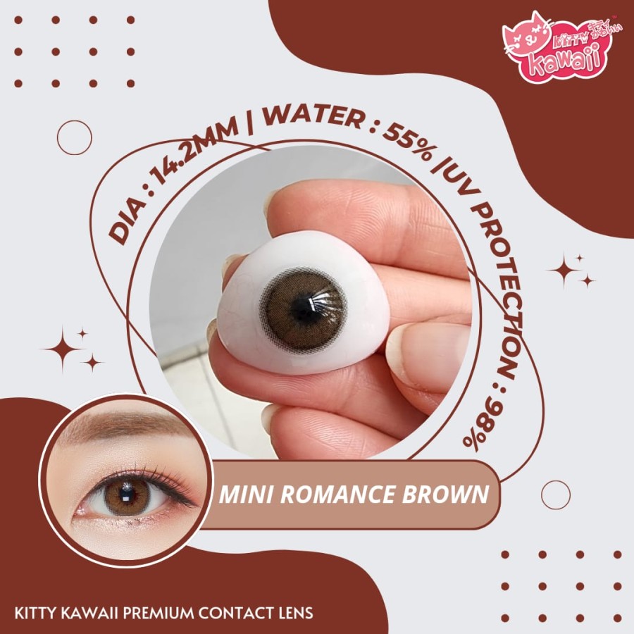 Elevate your eyes with the enchanting Kitty Kawaii Mini Romance Brown Contact Lens. These lenses, made in Korea, combine high quality with exceptional comfort. With a diameter of 14.2mm, they provide a subtle enlargement effect that enhances the natural beauty of your eyes. The lenses have a water content of 55%, ensuring all-day comfort and hydration. Additionally, they offer 98% UV protection, safeguarding your eyes from harmful sun rays. Experience the perfect blend of style and comfort with the Kitty Kawaii Mini Romance Brown Contact Lens.