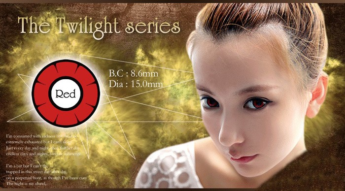 Introducing our captivating Red Twilight Series contact lens, meticulously crafted in Japan. With a diameter of 15 mm, these lenses create a striking and enchanting effect for your eyes. The 50% water content ensures exceptional comfort, while the base curve of 8.6 mm guarantees a secure and precise fit. With a lens thickness of 0.022 mm, these lenses offer a lightweight and natural feel. Whether you’re a makeup artist, cosplayer, or simply someone seeking a bold and dramatic look, our Red Twilight Series contact lens is the perfect choice to express your unique style. Experience the allure of our Red Twilight Series and let your eyes shine with irresistible charm.